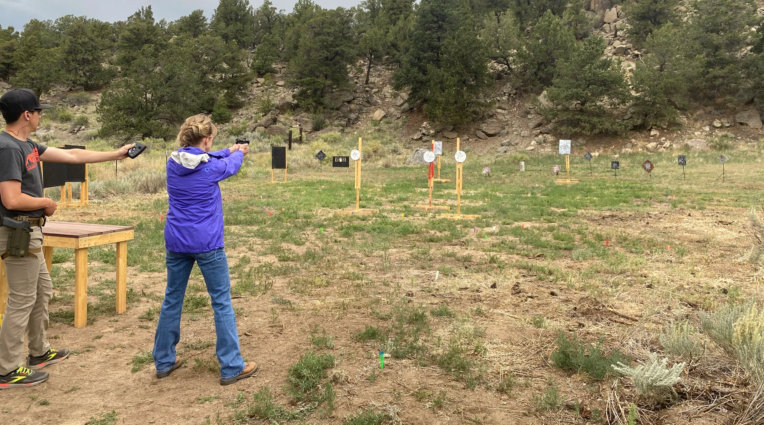 The pistol range is 30ish yards deep and 5 lanes wide. There are target stands available to staple paper targets to. There are also various steel targets on the range. For safety, please don’t shoot the steel targets any closer than 10 yards.