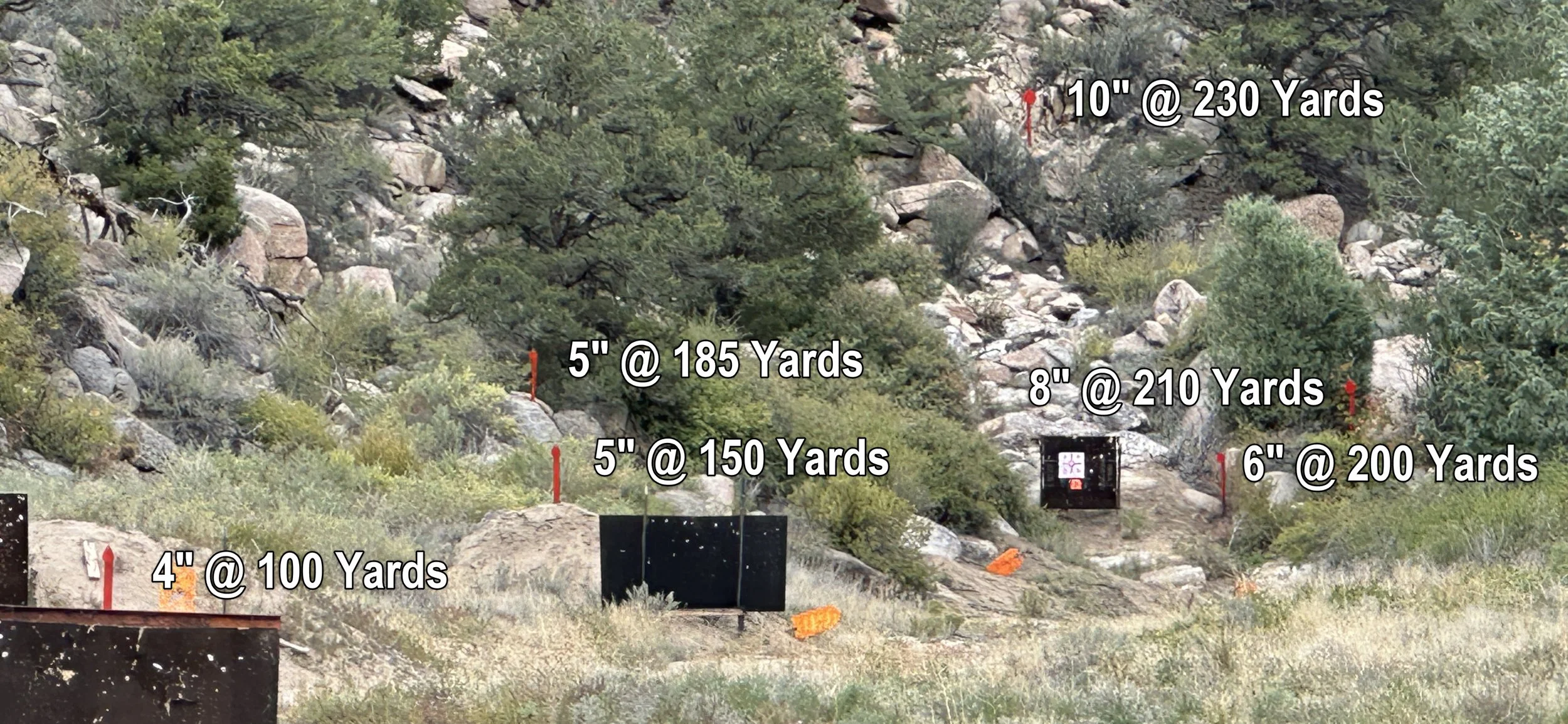 Centerfire steel targets at 100, 150, 185, 200, 210 & 230 yards. These targets are painted orange or red. Please don’t shoot anything larger than .30 caliber rounds at our centerfire steel targets.